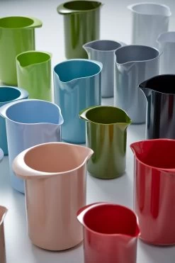 Sehr haltbare Kanne aus Melamin. Die Kanne hat einen gummiring an der unterseite. Ideal fürs backen. Spülmaschinenfest. Nicht Mikrowellenfest.